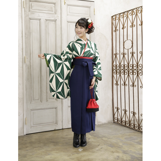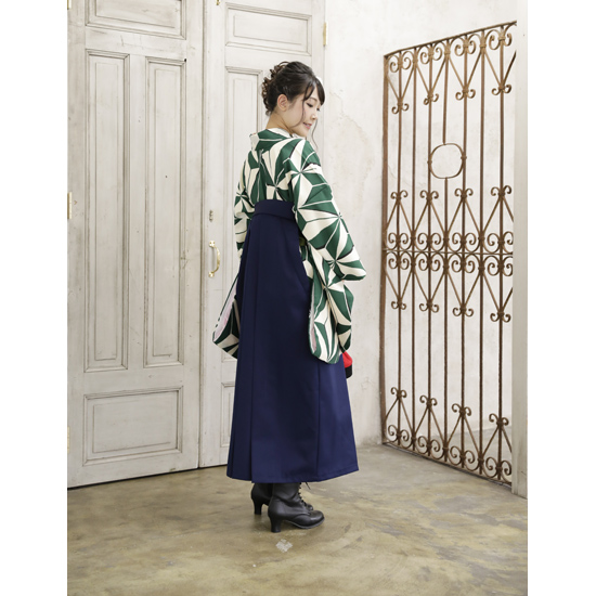 【色 / 柄】 着物:緑 袴:紺 帯:赤