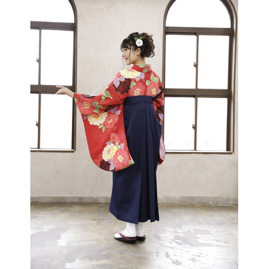 【色 / 柄】 着物:赤 袴:紺 帯:緑