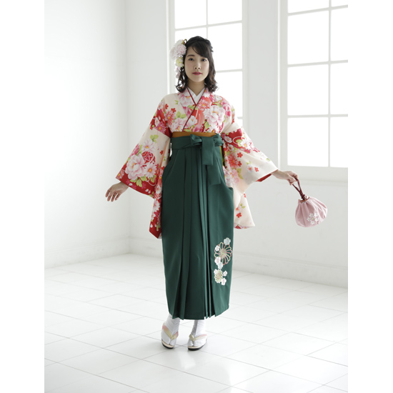 【色 / 柄】 着物:白 袴:緑 帯:黄色